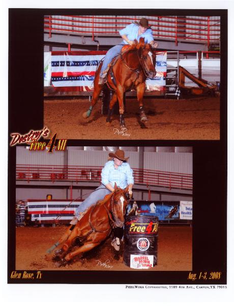 The name "Kidd Ranch" came from our great horse, Jody's Flame aka KIDD. Kidd is the reason that we bought the ranch and he is the reason why we continue to pursue our dreams of raising and riding great horses to follow in his footsteps. I (Carissa Bryant) was raised on a ranch in Stephenville, Texas. I rode in my first rodeo at the ripe age of 4. Kidd came into my life in 1990. Our dear friend Wanda Jetton owned Kidd at the time and wanted me to ride him and sell him for her. Needless to say, we ended up falling in love with Kidd and buying him ourselves. I have run barrels on him for 17 yrs now. I can honestly say that he has spoiled me & my mom! He has made it VERY difficult to find another horse that even comes half way near to the caliber of horse he is. Needless to say, Kidd is our PRIDE and JOY! Thanks to Kidd, he led me to many, many accomplishments in barrel racing! I am thankful of that everyday! |